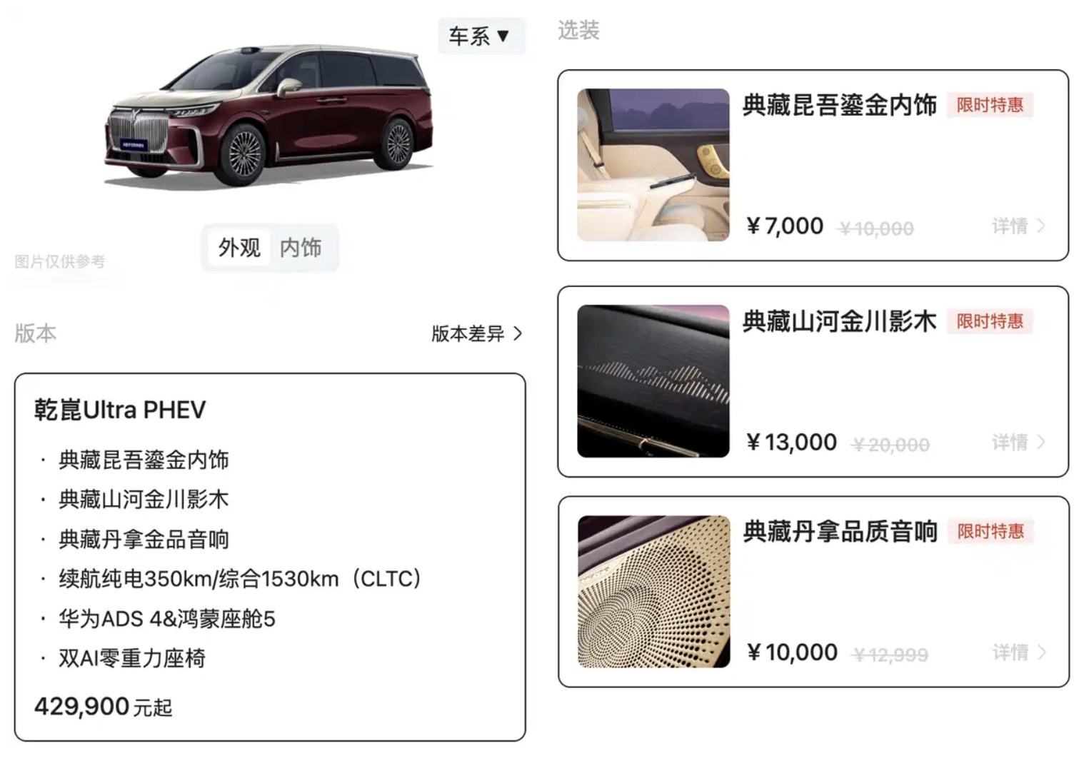 日前,買車網(wǎng)Buycar從嵐圖官方獲悉,嵐圖夢想家典藏版正式上市,售價為45.99萬元。新車基于2026款夢想家PHEV乾崑Ultra版(售42.99萬元)打造,主要針對豪華配置進行了升級。